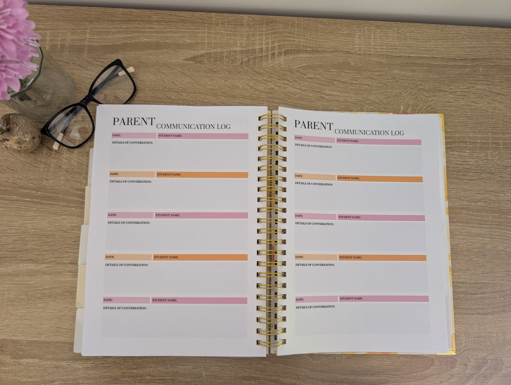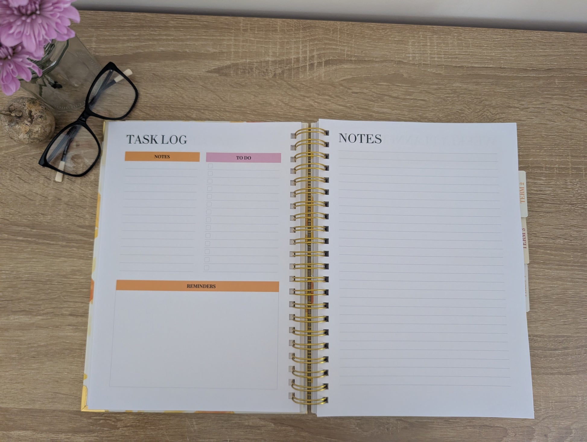 • Task Log & Meeting notes between weekly pages for convenient planning